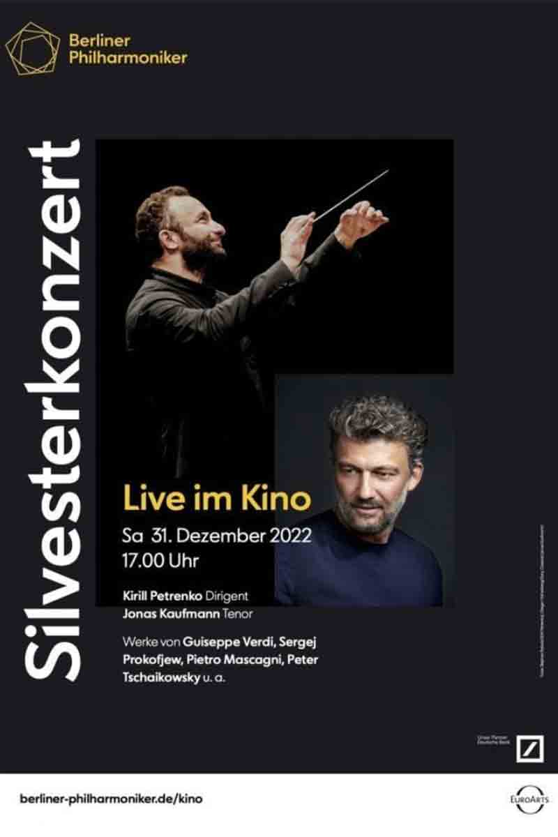 Siegburg. Sa, 31. Dez. Zum Jahresausklang präsentieren die Berliner Philharmoniker und Chefdirigent Kirill Petrenko ein mitreißendes russisch-italienisches Programm mit Tenor Jonas Kaufmann als Stargast. 26 EUR. Cineplex Siegburg, Europaplatz 1, Tel.: 0 22 41 / 9 58 08 80. www.cineplex.de