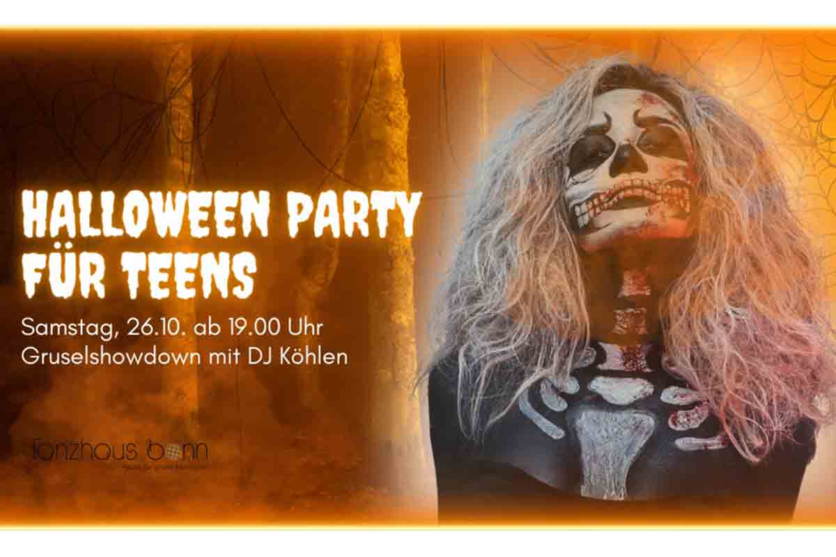 Bonn. Samstag, 26.10.2024, 19-22 Uhr. DJ Köhlen sorgt für gruselige Musik, Animation und Horrorfeeling! Mindestalter: 14 Jahre. Vorverkauf bis 24.10.24: 6,00 €; Ab 25.10.24: 10,00 €. Tanzhaus Bonn