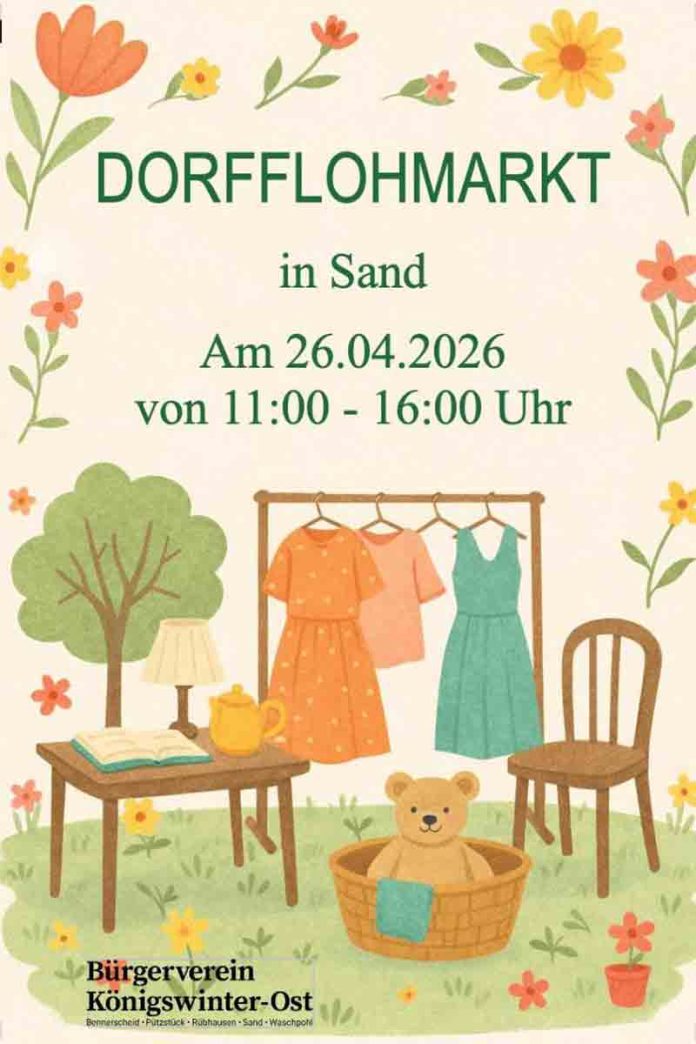 wir freuen uns riesig, euch zum ersten Dorfflohmarkt in Sand einzuladen!