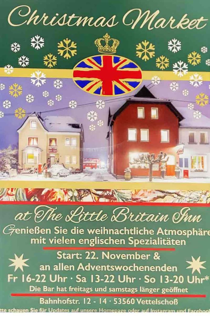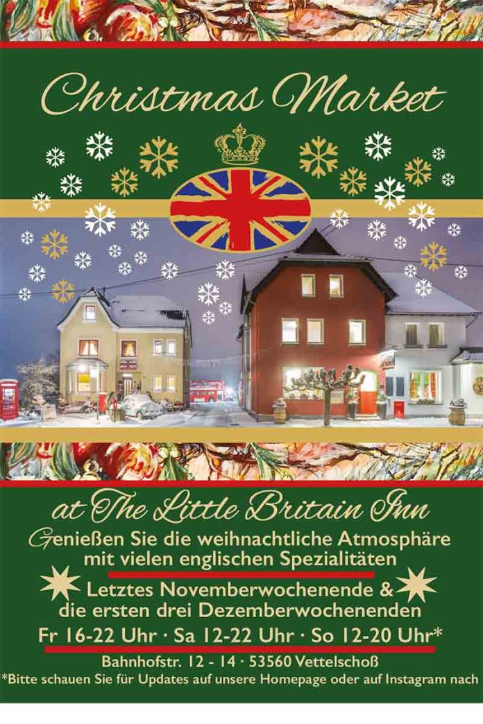 Bitte schauen Sie für Updates auf unsere Homepage oder auf Instagram und Facebook nach: www.thelittlebritaininn.com/weihnachtsmarkt