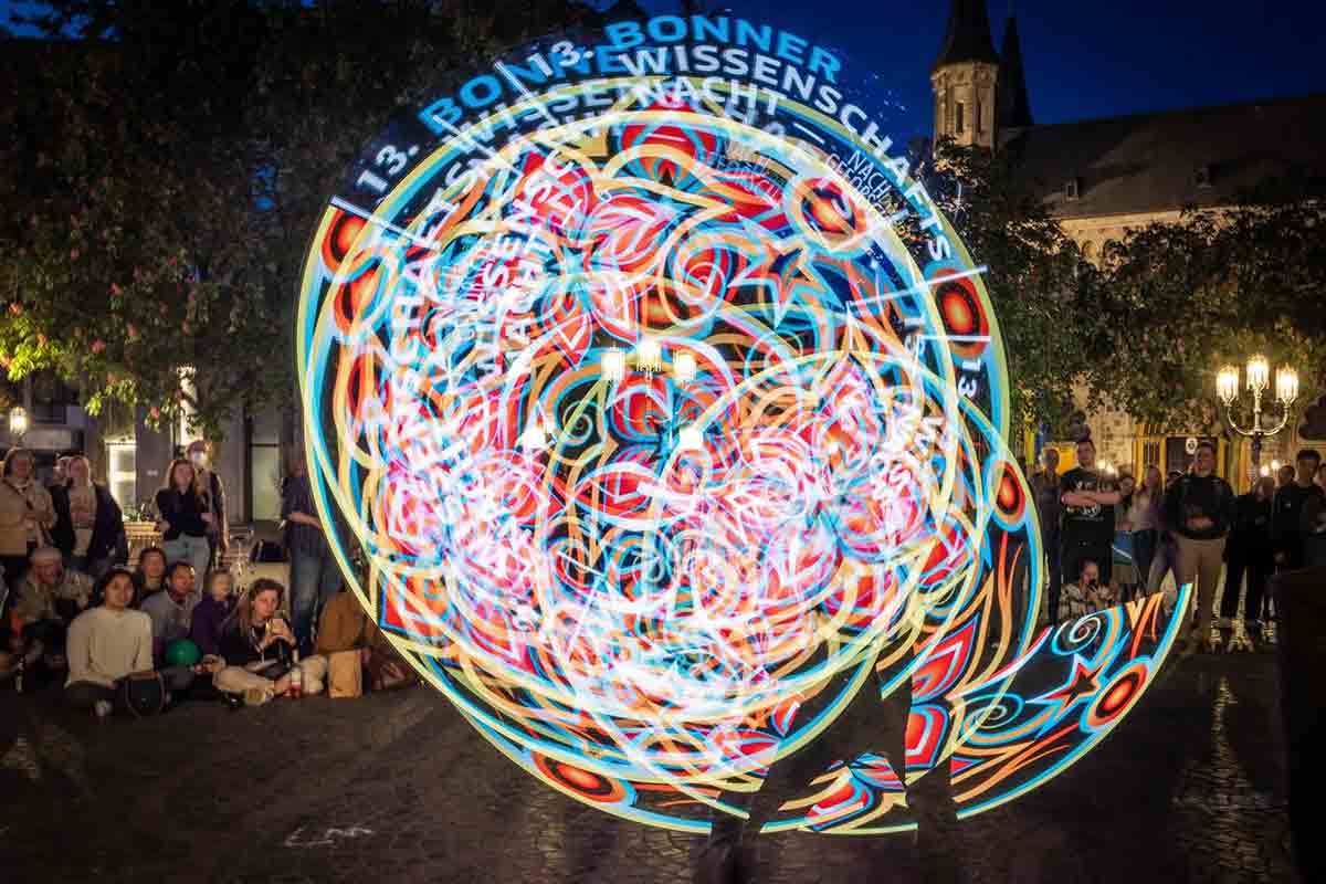 Foto: Lichtjonglage bei der 13. Bonner Wissenschaftsnacht; © Volker Lannert/Bundesstadt Bonn