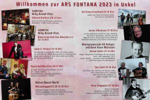 Am 15. & 16. Juni spielen verschiedene Bands in den Straßen Unkels. Der Musik könnt ihr auf insgesamt 3 Bühnen in der Unkeler Innenstadt lauschen (Willy-Brandt-Platz, Oberer Markt & Unterer Markt).