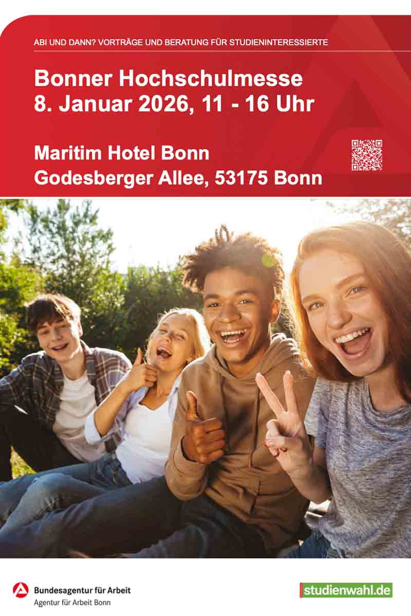 Neben Beratungs- und Informationsständen von über 20 Hochschulen und weiteren Beratungsinstitutionen aus der Umgebung wird es 15 Vorträge zu Studiengängen und Studienwahlthemen geben. https://berufsberatung-bonn.de/bonner-hochschulmesse-2026/