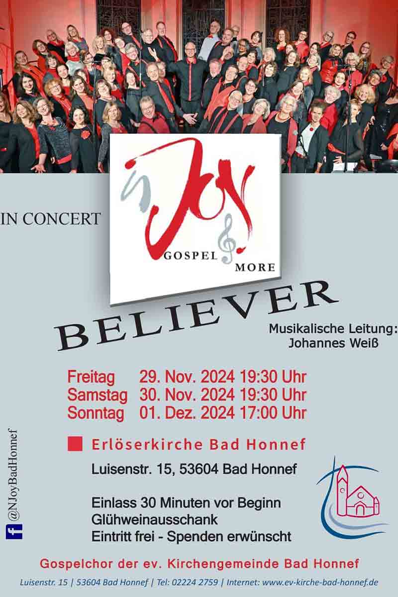 Der Gospelchor der evangelischen Kirchengemeinde in Bad Honnef gibt drei Weihnachtskonzerte in der Erlöserkirche, Luisenstr. 15.