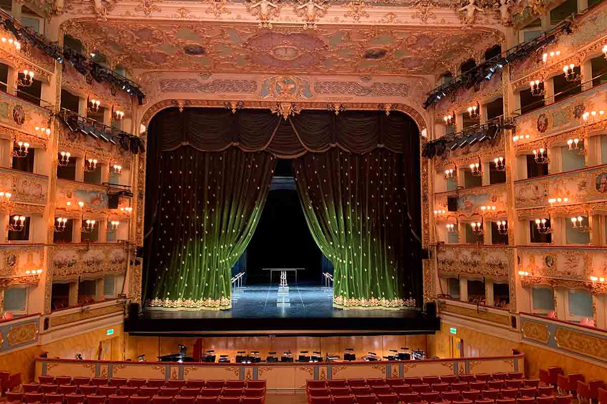 Foto: Der Bühnensaal der Oper von Venedig (La Fenice), 2020, © picture alliance/dpa / Annette Reuther