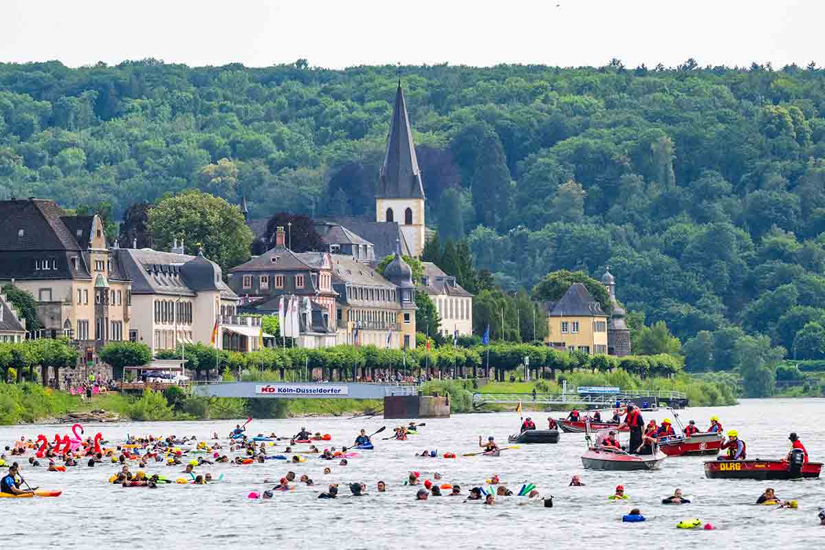 Seit fast 40 Jahren setzt die DLRG-Ortsgruppe Bad Honnef-Unkel e.V. die Tradition fort, dass schwimmbegeisterten Menschen einmal im Jahr gefahrlos das Schwimmen im Rhein von Linz nach Bad Honnef ermöglicht wird.