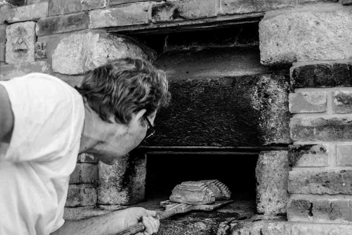 Von einem ehrenamtlichen Mitarbeiter mehrere Stunden vorher angeheizt, wird darin das traditionelle Steinofenbrot von Konditormeister Martin Heimbach ab ca. 14.30 Uhr ausgebacken.