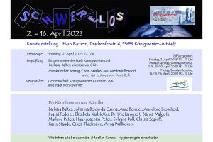 Der Bürgermeister der Stadt Königswinter wird die Ausstellung eröffnen, der Chor „taktlos“ aus Niederdollendorf wird die Vernissage musikalisch bereichern.