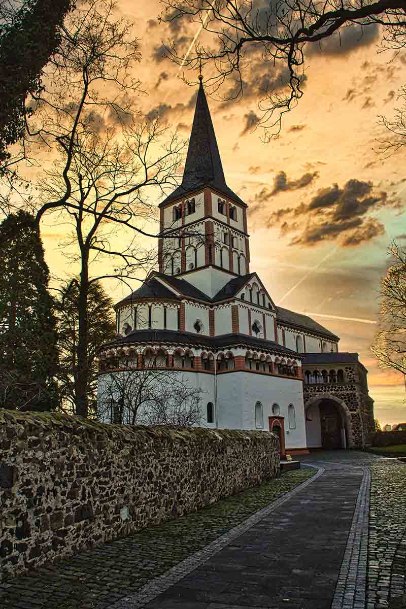 Schwarzrheindorf. So, 24. März. Führung mit Hildegard Schäfer. Von außen weithin sichtbar gehört die Doppelkirche von Schwarzrheindorf zu den berühmten zweigeschossigen Kirchen des Mittelalters. Aus der eindrucksvollen Vereinigung von Architektur, Malerei und Skulptur stechen die Wandmalereien in den Gewölben hervor, die rätselhaft erscheinende Szenen aus dem alten und dem neuen Testament zeigen. 5 EUR / erm. 2,50 EUR. Treffpunkt: Dixstraße 41, 53225 Bonn-Schwarzrheindorf