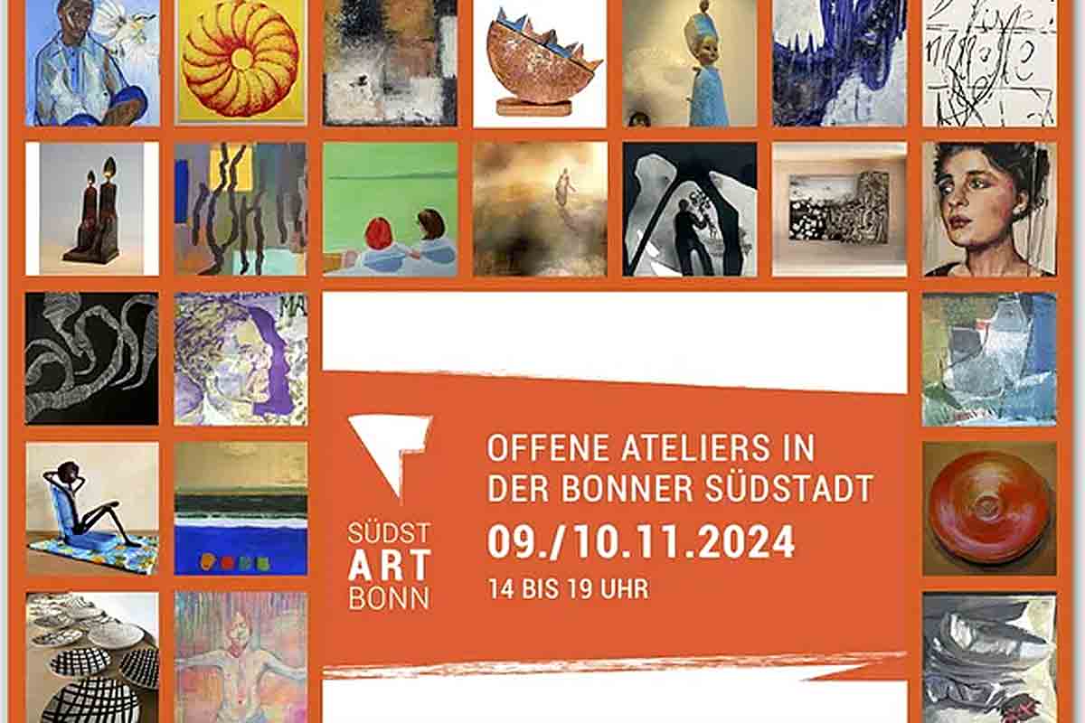 Bonn. Sa, 9. und So, 10. Nov. 40 Künstler:innen der „SüdstART“-Gemeinschaft zeigen in 20 Werkstätten ihre Werke und freuen sich auf den Austausch mit interessierten Besucher:innen. Der kultige Rundgang gibt Einblicke in vielfältiges Kunstschaffen. Infos: www.suedstart.de |