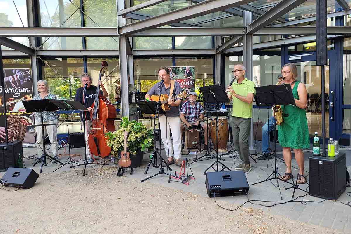 Bad Honnef. Sa, 5. Aug. Seien Sie herzlich eingeladen, ihren Picknickkorb mit eigenen Speisen zu füllen und auf dem Platz neben der Erlöserkirche, Luisenstr. 15 zusammenzukommen! Die Musiker von „Sagarina Combo“ mit Liedern und Stücken aus ihrem umfassenden Repertoire aus Balkanmusik, bretonischen Liedern, internationaler Folklore, Swingstyle Songs, südamerikanischer Cumbia und Musik der „17 Hippies“ sorgen für musikalische Vielfalt. Getränke stehen gegen eine kleine Spende bereit. Lassen Sie uns miteinander das Leben feiern! |