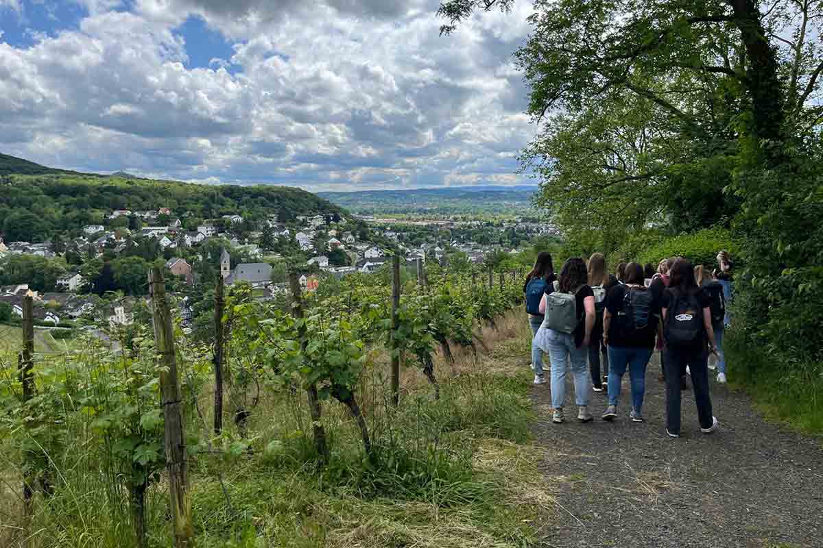 Dollendorf. Mi, 14. Mai. Eine leichtere Tour (ca. 8 km) vom Niederdollendorf Bahnhof über die aussichtsreichen Dollendorfer Weinberge zur ehemaligen Zisterzienserabtei Heisterbach. Von dort geht es in die Weinberge am Fuß des Petersbergs, wo ein wenig vom köstlichen Rebensaft des Biowinzers, alternativ Obstsaft aus biologischem Anbau probiert werden kann, bevor es über einen uralten Winzerweg wieder zurück geht. Spende für Wanderung & Wein erbeten 10 EUR (Erwachsene), Kinder bis 12 Jahre dürfen kostenlos mit, Hunde nur angeleint. Anmeldung: info@naturundlandschaftsfuehrer.com